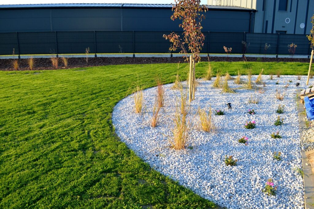 Ozdobne klomby dopełniają perfekcyjny wygląd zarówno ogrodu za domem, jak i ogrodu frontowego czy miejsc wokół płotu, z którymi zwykle nie wiesz jak sobie poradzić. Aby dopełnić wygląd, używamy ściółki z kory i kamyków o różnej wielkości, aby zapobiec przerastaniu chwastów.